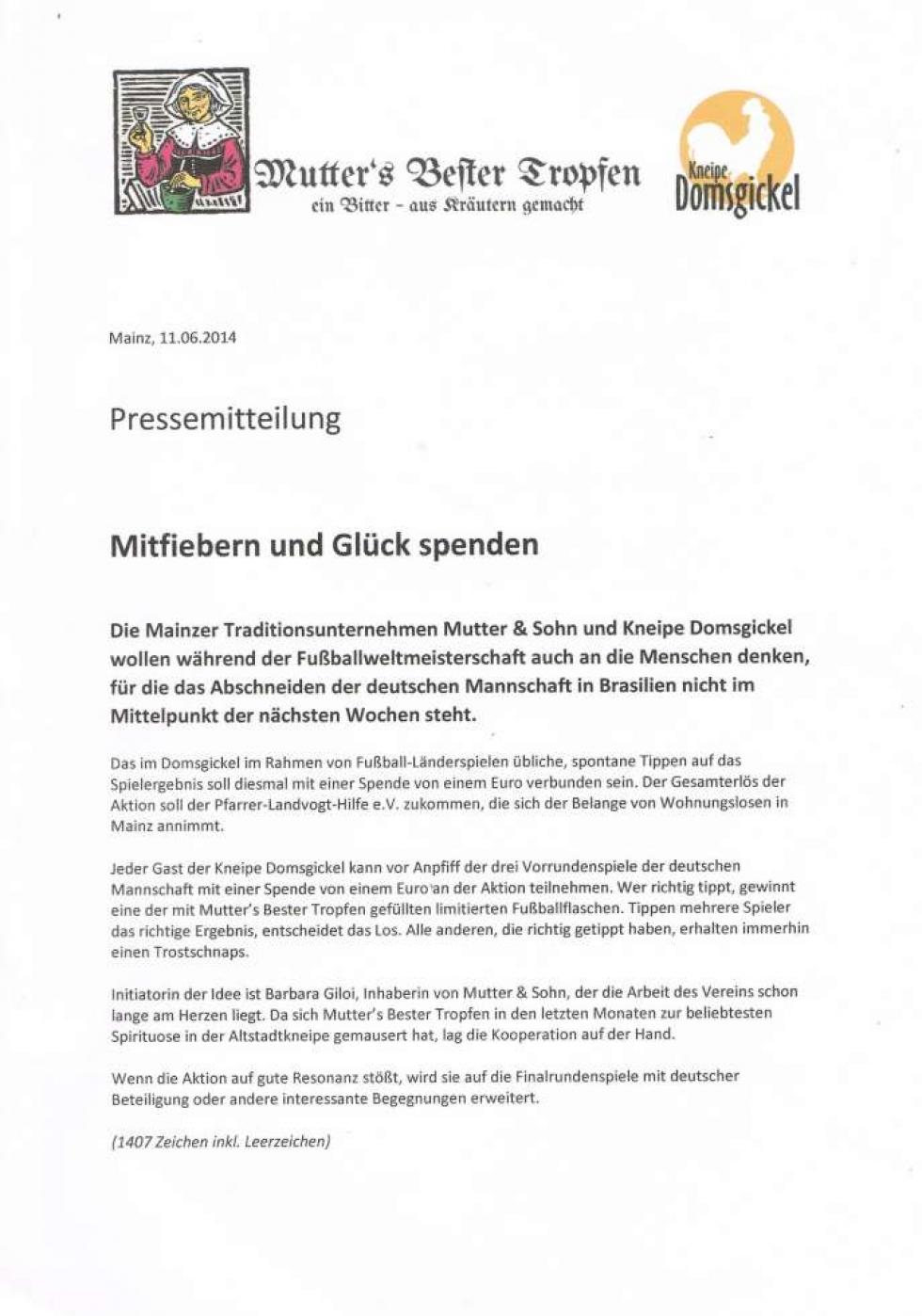 Mutters bester Tropfen auf Facebook besuchen Presseberichte